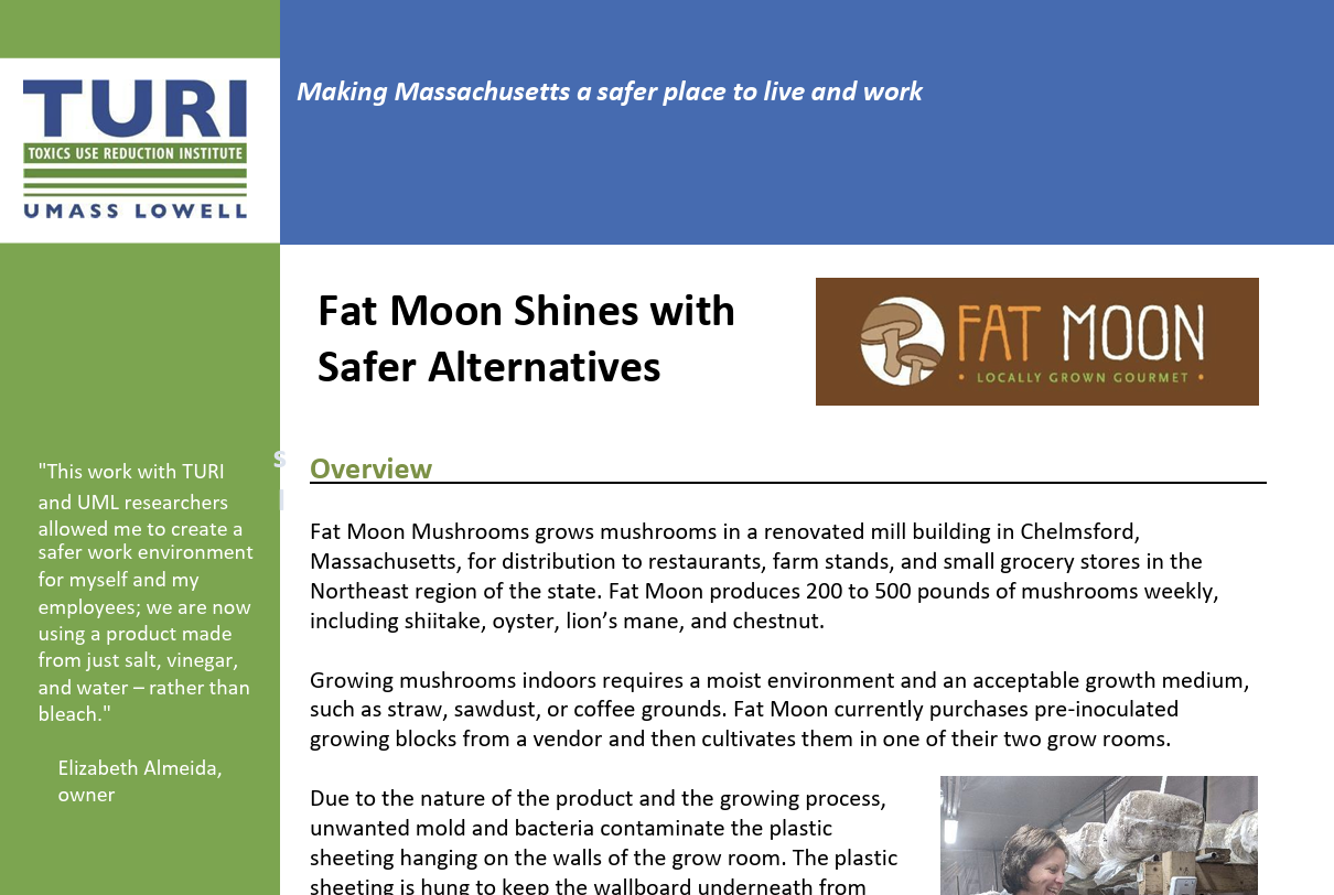 The TURI Lab tested the performance of safer methods to replace bleach at a mushroom producer.