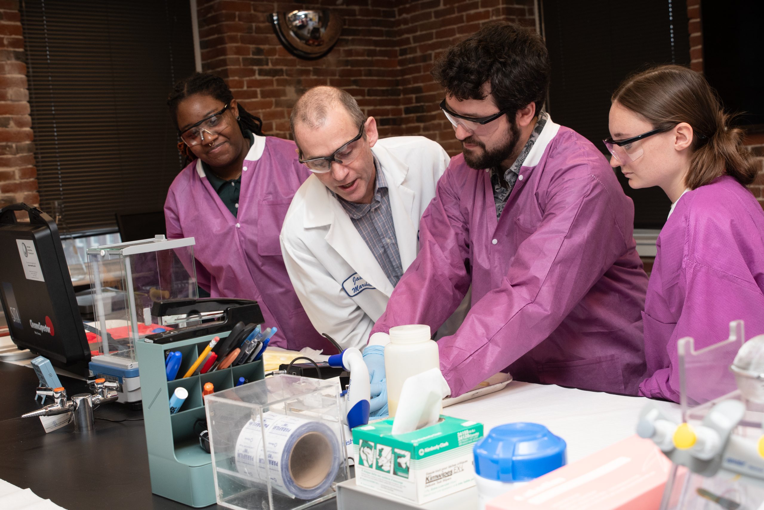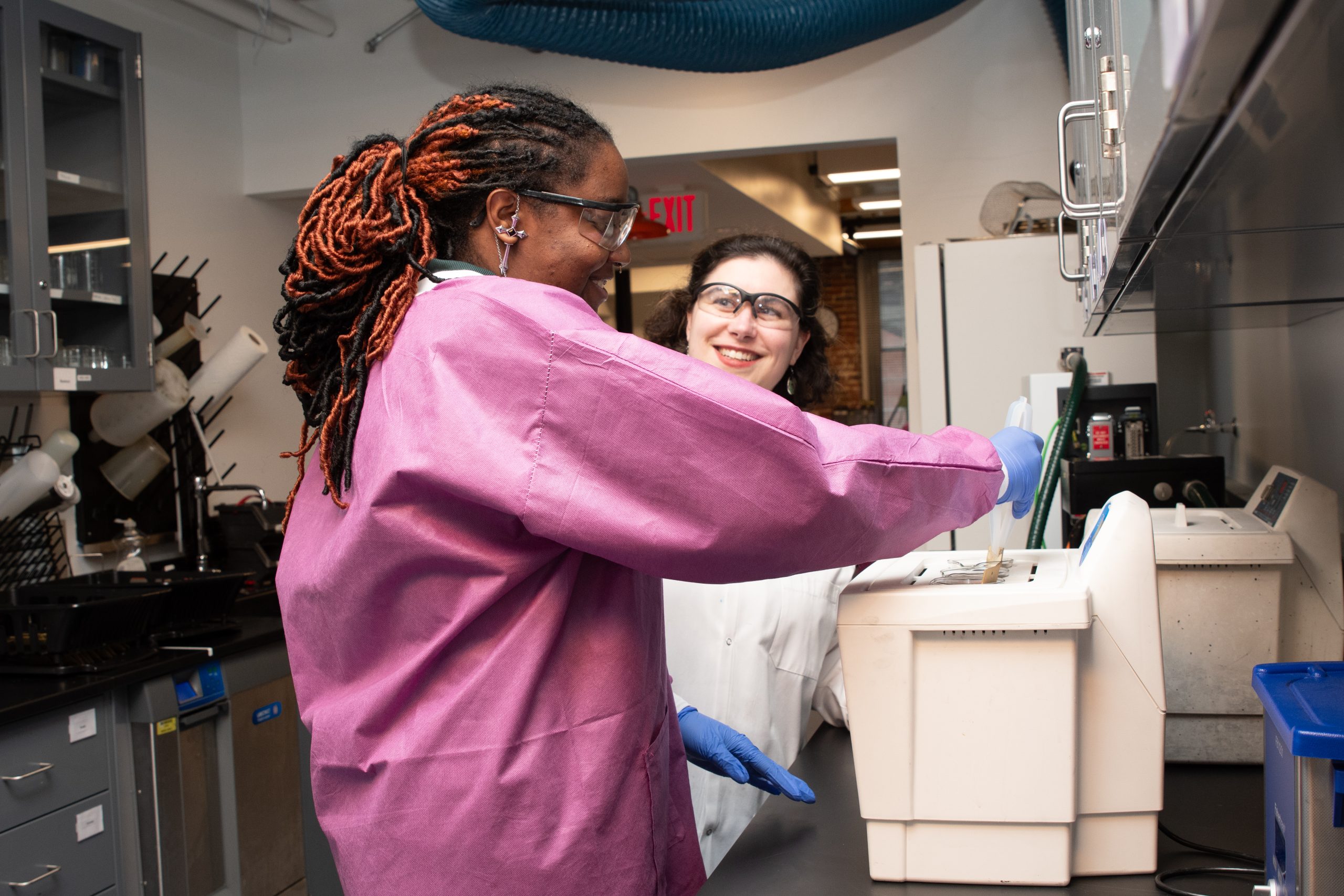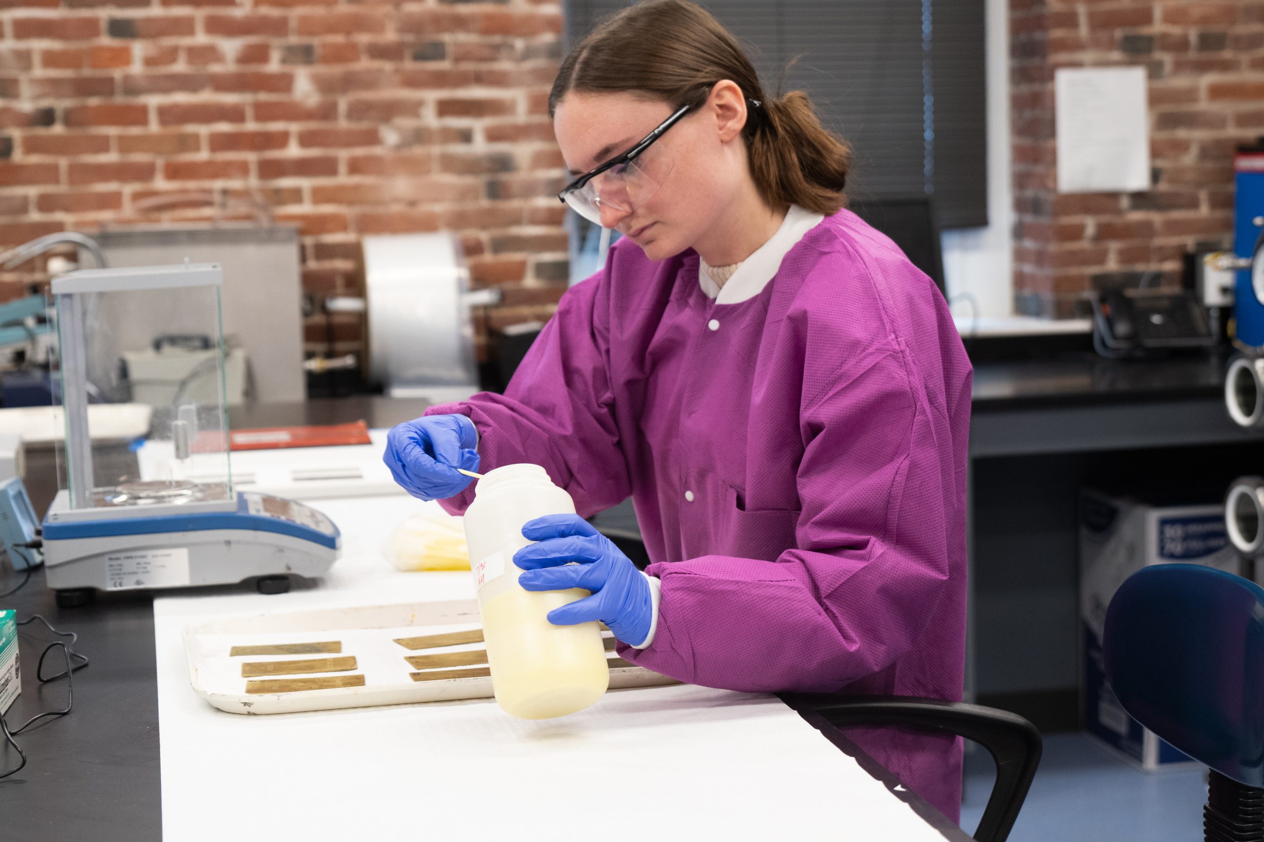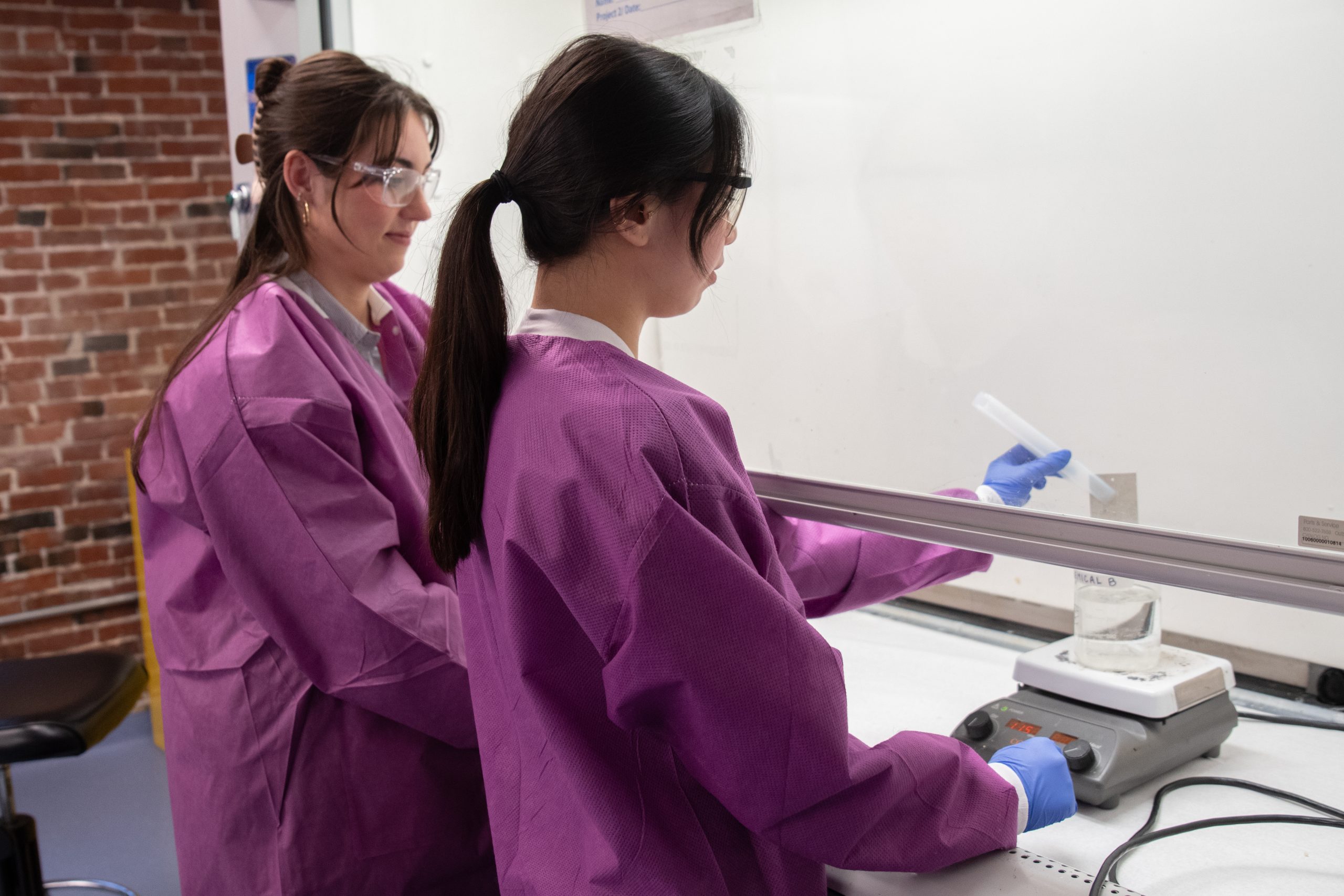 UMass Lowell students hired by the Toxics Use Reduction Institute Lab learn how to evaluate the performance of safer chemicals and devices used for cleaning and disinfecting in industrial, janitorial and household scenarios.