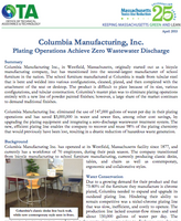 “OTA’s mission is to help companies investigate whether they can reduce use and waste generation, such as wastewater discharges from plating processes, and we could not be more grateful when a company like Columbia not only reduces discharges but eliminates them, and then generously shares with other companies how they did it,” says Rick Reibstein, Manager of Outreach and Policy, Office of Technical Assistance.