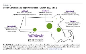 The ability of Massachusetts to collect data on industrial PFAS use under TURA is unique as the EPA’s Toxics Release Inventory covers a far less extensive group of PFAS substances. Access to this information puts the Commonwealth in a strong position to address PFAS sources using Toxics Use Reduction. As data collection on PFAS use in manufacturing and in products continues, TURI will seek opportunities to provide targeted assistance to the relevant companies, prioritizing those near EJ Neighborhoods.